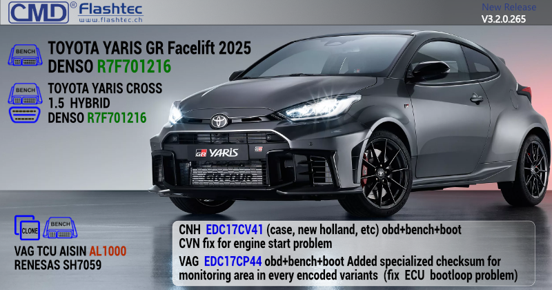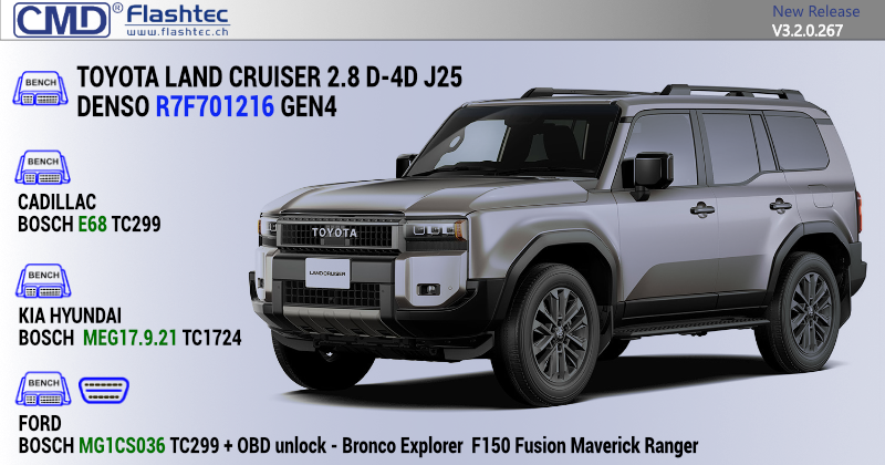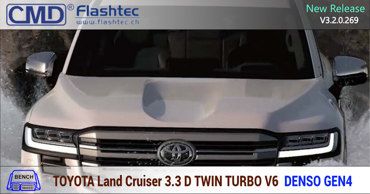 BENCH TOYOTA LAND CRUISER 3.3 twin-turbo V6 D-4D J30 227kW DENSO DIESEL-R7F701216 GEN4 This new BENCH protocol allows you to manage the map+fw areas of DENSO DIESEL-R7F701216 GEN4 ECU